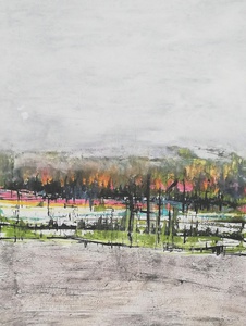 Wanneer ik begin met een nieuw doek, bepaal ik eerst of ik met acryl of met olie verf ga werken. ik hou van werken in lagen en gebruik vaak verschillende materialen op een doek.